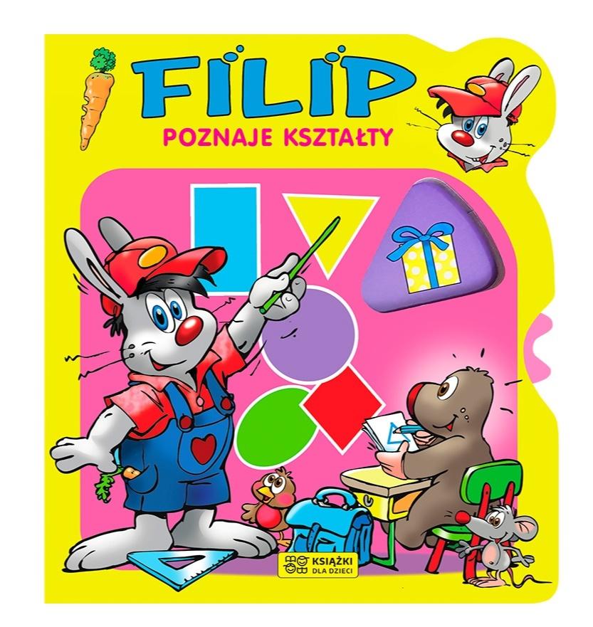 Jedna z serii czterech kartonowych książeczek dla dzieci od trzeciego roku życia. Proste teksty i wyraźne, tematyczne ilustracje zostały tak zaprojektowane, by maluch skupił się na omawianych tematach i poznał podstawowe kolory, kształty i przeciwieństwa oraz nauczył się liczyć do sześciu. Atutem każdej książeczki jest proste w obsłudze kółko, którym mały czytelnik ma tak długo kręcić, aż w okienku ukaże się szukany na danej stronie przedmiot. Filip i jego przyjaciele gwarantują dzieciom dobrą zabawę połączoną z przyjemną nauką.