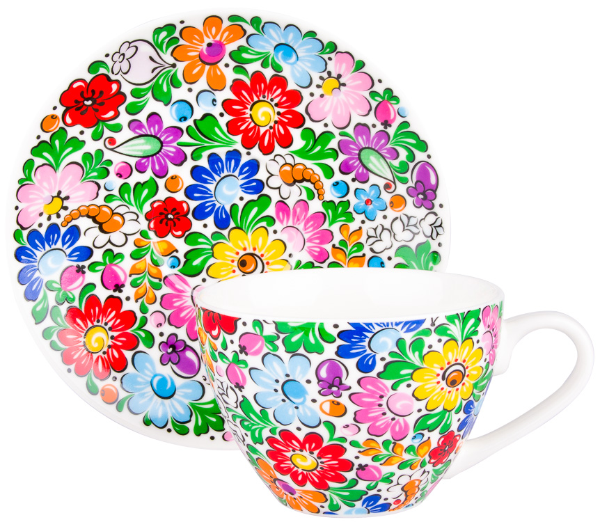 - wzór ludowy znajduje się na całej powierzchni filiżanki