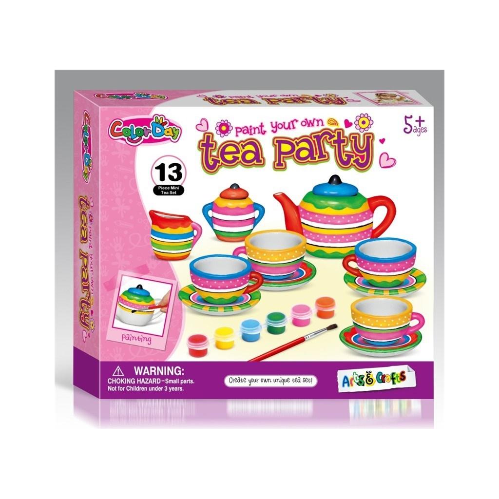 Porcelanowy serwis herbaciany do własnoręcznego malowania. Farbki i pędzelek w komplecie. Zestaw zawiera 13 elementów.