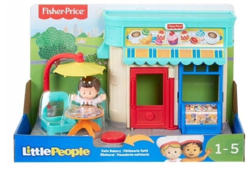 Zapraszamy do cukierni z kawiarnią Little People, gdzie maluchy mogą oddawać się pysznej zabawie z przyjaciółmi! W tym zestawie do zabawy z uroczą kawiarenką znajduje się ruchomy parasol, który można trącać i obracać, a także wyjmowane krzesła i stół do delektowania się smakołykami na świeżym powietrzu. Klienci mogą obejrzeć wystawę pysznych produktów w oknie cukierni, a następnie złożyć zamówienie u kelnera. Smacznego! Zabawa, która rozwija. Zręczność: chwytanie i poruszanie figurek i elementów do zabawy poprawia zręczność dziecka i koordynację rękaoko. Zabawa z wyobraźnią: łatwe do chwytania elementy pozwalają dzieciom puścić wodze fantazji i wymyślać rozmaite historyjki.