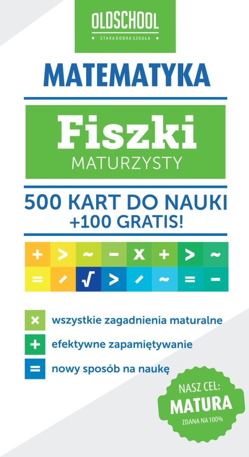 Potrzebujesz powtórki przed maturą? Szybkiej pomocy przed klasówką?Seria `Oldschool - stara dobra szkoła` została przygotowana przez doświadczonych korepetytorów i metodyków, a wszystkie publikacje są konsultowane z nauczycielami i samymi maturzystami.`Fiszki maturzysty` to skuteczna nauka tego, czego naprawdę potrzebujesz. Skorzystaj z nowego sposobu na szybkie zapamiętywanie!Dzięki `Fiszkom maturzysty`:- opanujesz wszystkie zagadnienia maturalne- sprawdzisz i usystematyzujesz swoją wiedzę - dostosujesz tempo nauki do własnych potrzeb- będziesz mógł uczyć się samodzielnie lub kolegami.