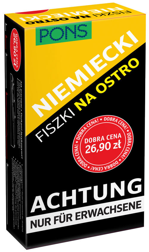 Chcesz poznać obcojęzyczne słowa, których nie znajdziesz w podręcznikach szkolnych"" Sięgnij po fiszki PONS z serii ""Na ostro"". Dowiesz się z nich, jak bardzo nieformalnie wyrazić swoje ""mocne zdenerwowanie"", określić stan ""wysokiego stężenia alkoholu w organizmie"" lub oznajmić, że dany osobnik ""charakteryzuje się urodą zdecydowanie wyższą od przeciętnej"". Przeglądaj fiszki regularnie i ucz się z nich słownictwa, które będziesz mógł wykorzystać w wielu codziennych sytuacjach - w knajpie przy piwie, na nieformalnych spotkaniach towarzyskich czy randkach. Pamiętaj, nasze fiszki są jak zapałki, trzymaj je z daleka od dzieci!
