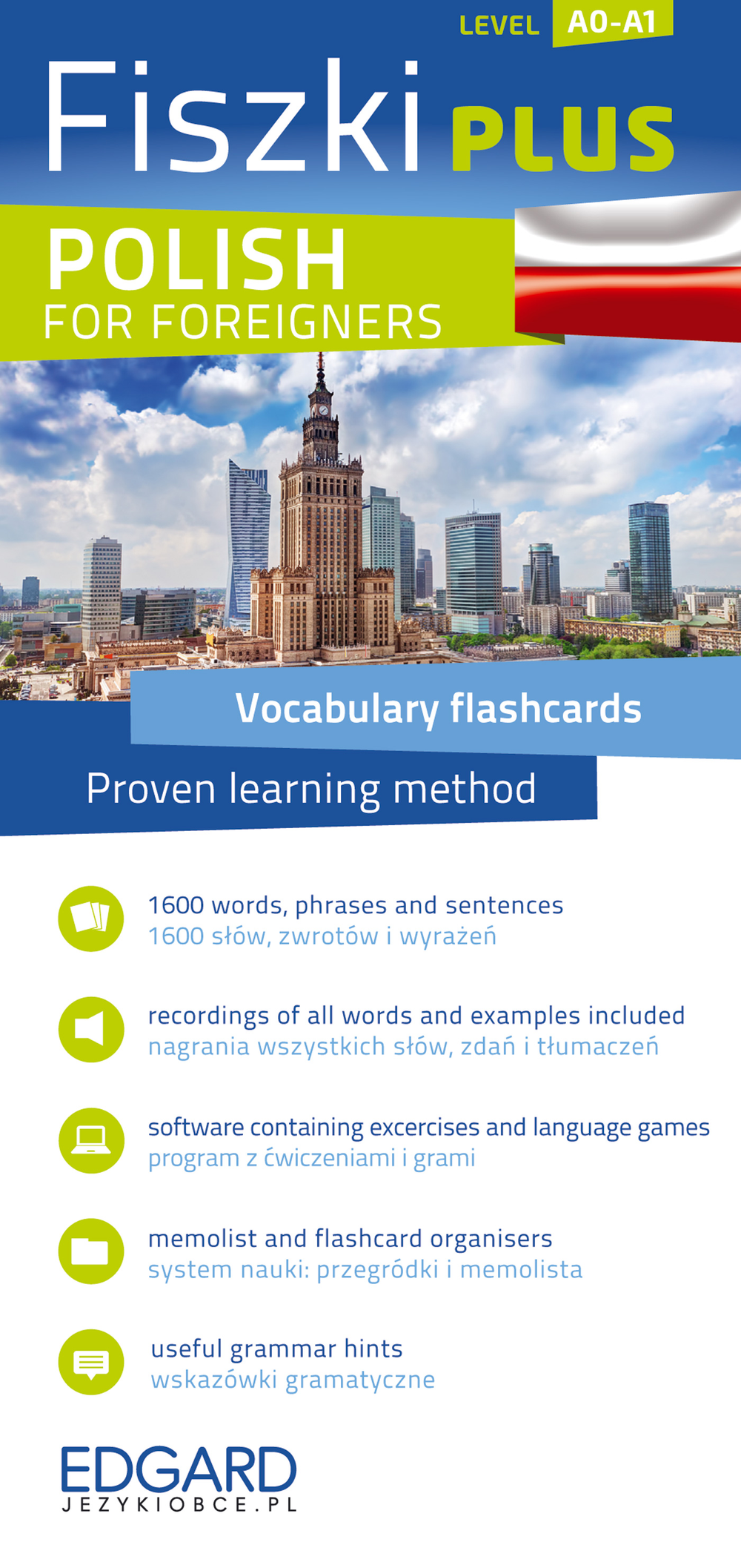 Fiszki PLUS Polish for Foreigners (A0-A1) is 600 flashcards packet and a part of a comprehensive learning system, allowing you to learn polish vocabulary at each level quickly and effectively.