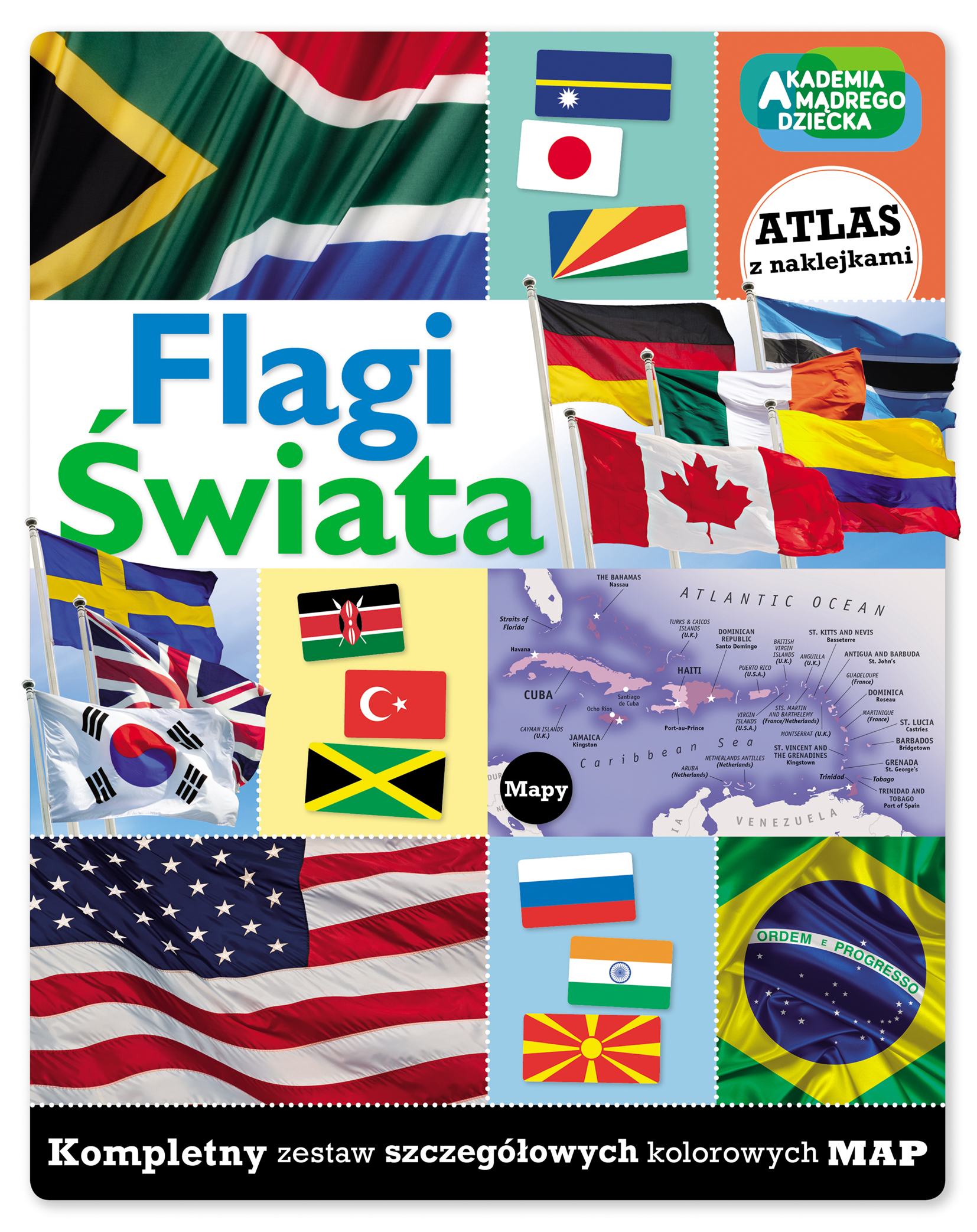 Poznawaj świat i flagi dzięki wyjątkowemu atlasowi z naklejkami. W środku znajdziesz ciekawostki o flagach oraz dane statystyczne na temat krajów. Dokładne mapy zostały uzupełnione o kolorowe fotografie najważniejszych miejsc i wydarzeń. W książce znajdziesz zestaw szczegółowych kolorowych map i 197 naklejek z flagami. W serii: Która godzina? Tabliczka mnożenia Flagi