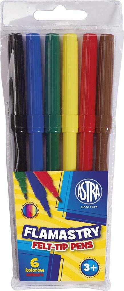 Wysokiej jakości flamastry produkowane są według najlepszych norm jakościowych. Dobra jakość tuszu oraz żywe kolory zapewnią dzieciom długie godziny zabawy. Flamastry ASTRY posiadają bezpieczną wentylowaną skuwkę.