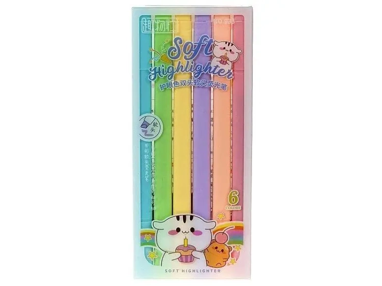 Zestaw 6 flamastrów dwustronnych (zakreślacz+cienkopis) 15,5x6,5cm