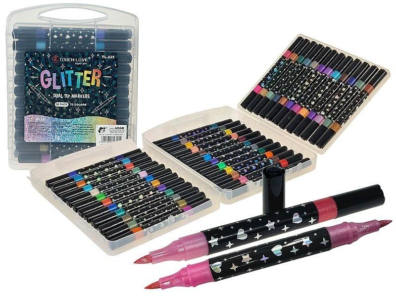 zestaw flamastrów z brokatem, dwustronne, 72 kolory, 22x17x4,5cm