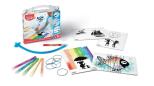 Nietypowy sposób na kolorowanie umieść flamaster w plastikowej nasadce z elastyczną rurką i dmuchaj w ustnik a kolorowa mgiełka osiądzie na kartce dając ciekawy efekt. W ogóle się nie zmęczysz dzięki rurce nie musisz się schylać nad swoim arcydziełem. Mamy dla Ciebie extra pomysł na ciekawy efekt owiń gumkami swoją pracę przed malowaniem i ściagnij je na sam koniec- zaskoczony? Zestaw zawiera: 1 plastikową rurkę z nasadką na flamaster i ustnikiem z drugiej strony, 6 flamastrów Jungle, 4 karty z nadrukiem do kolorowania, 10 gumek recepturek. JS 1 szt