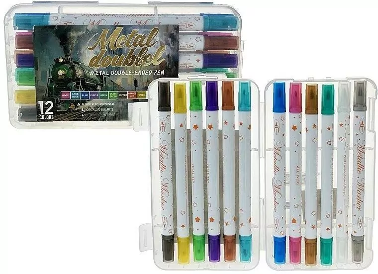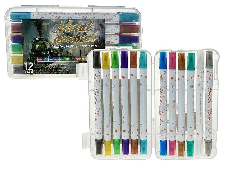 Zestaw 12 flamastrów dwustronnych 18x10cm; PVC