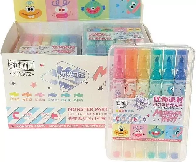 Zestaw 6 flamastrów dwustronnych (zakreślacz ze zmazywaniem) 15,5x10,5cm, PVC