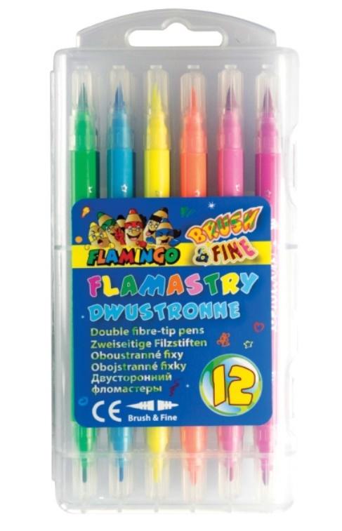 Flamastry dwustronne Brush & Fine 12 kolorów Flamingo