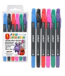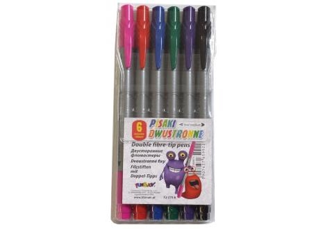 Zestaw pisaków dwustronnych Żywe, nieblaknące kolory Atrament wyprodukowany na bazie wody sprawia, że flamastry nie wydzielają nieprzyjemnego zapachu i łatwo zmywają się z większości powierzchni.