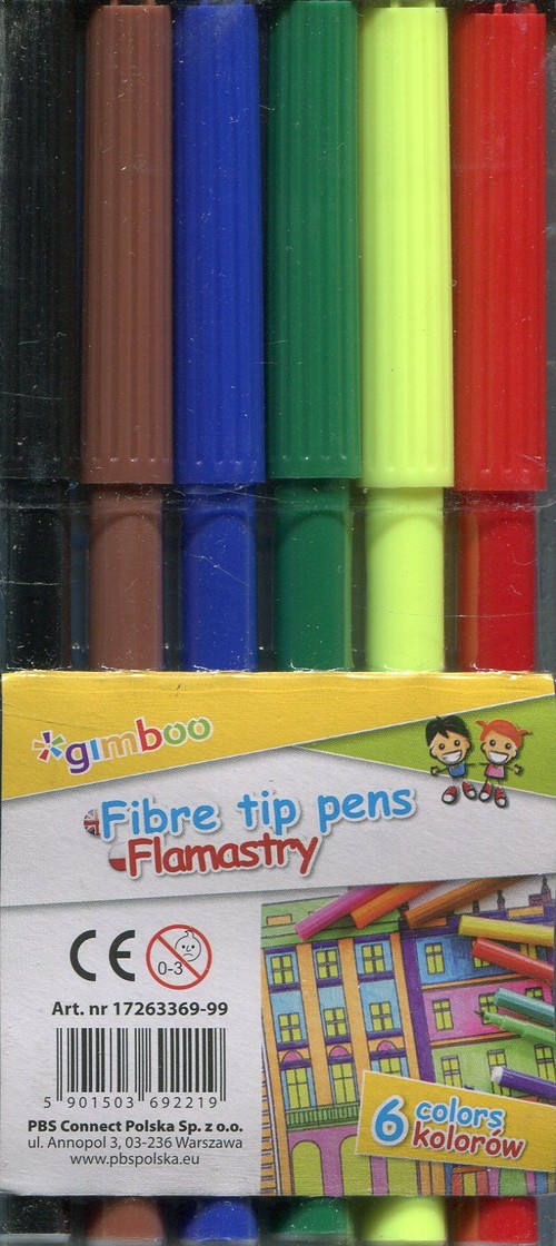 Opakowanie FLAMASTRY GIMBOO 6 KOLORÓW