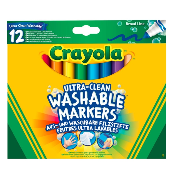 12 sztuk kolorowych flamastrów, które z łatwością zmyjesz lub spierzesz. ZAWARTOŚĆ: 12 różnokolorowych flamastrów. UWAGI: Dla dzieci od 3. roku życia.
