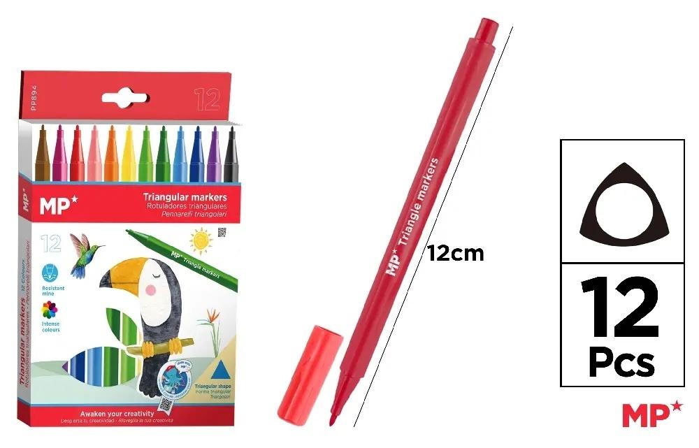 Flamastry szkolne trójkątne 12 kol. 12szt./opakowanie MP