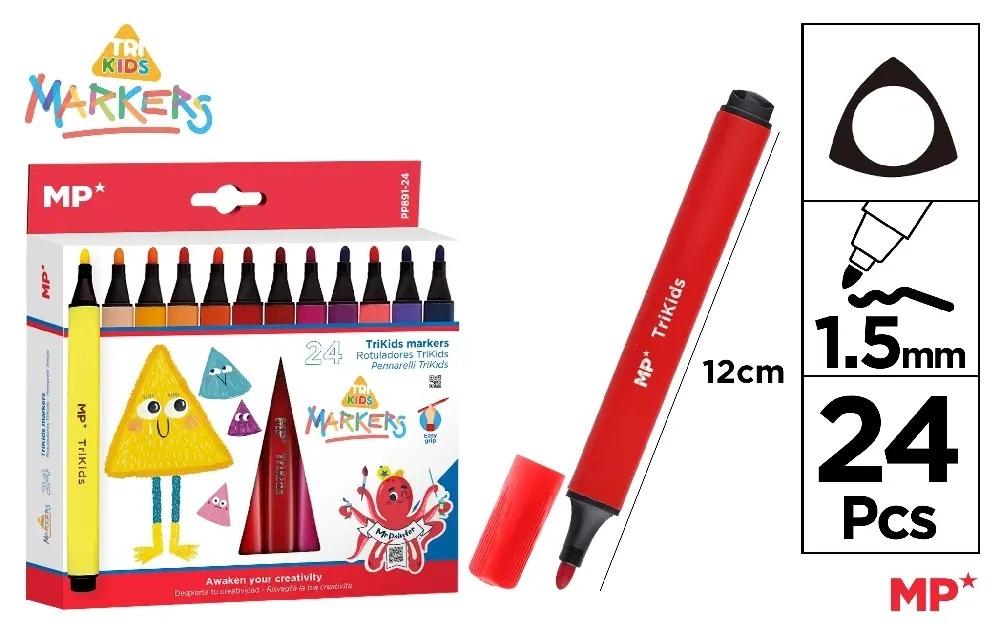 Flamastry szkolne trójkątne 24 kol. 24szt./opak MP
