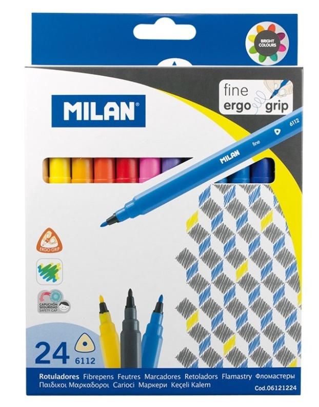 Flamastry z cienką końcówką o średnicy 2 mm. Ergonomiczny trójkątny kształt ułatwia trzymanie. Tusz na bazie wody. Żywe, intensywne kolory. Flamastry MILAN są zgodne z europejskimi i amerykańskimi normami bezpieczeństwa. Nie zawierają ftalanów, metali ciężkich i innych substancji toksycznych. Są bezpieczne dla dzieci.