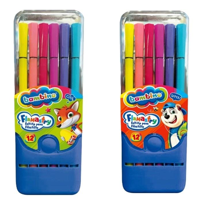 Flamastry w pudełku plastikowym BAMBINO 12 kolorów