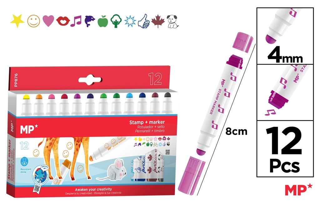 Flamastry z pieczątkami 12 kolorów