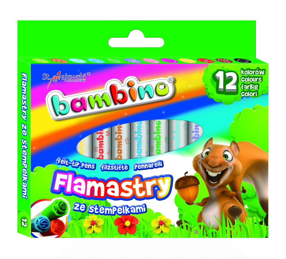 Flamastry ze stempelkami 12 kolorów Bambino