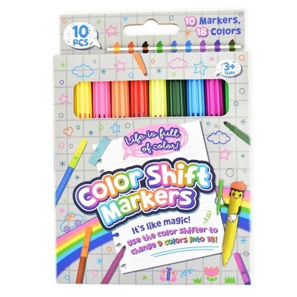 W zestawie znajduje się 8 różnokolorowych markerów do malowania oraz 2 białe do zmiany kolorów. Pokoloruj rysunek, narysuj dowolny kształt i zmieniaj kolory za pomocą białego flamastra. Dzięki temu magicznemu mazakowi twoje prace będą ciekawsze i bardziej kolorowe. Zaznaczaj paski, kropki, zmieniaj i baw się dowolnie kolorami.