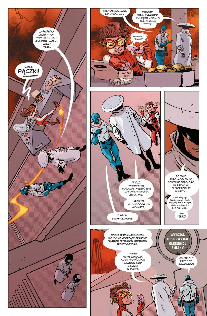 Złoczyńcy stali się nagle silniejsi i niebezpieczniejsi, ktoś przejął umysły dwóch Flashów, Amanda Waller coś knuje, a do tego multiwersum zagrażają Arkanioły i zgromadzenie Thawne’ów… Scenarzysta Simon Spurrier („Hellblazer”) i rysownik Ramón Pérez („Hawkeye. Odmieniony”) nie marnowali czasu!