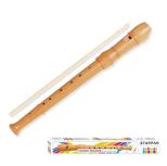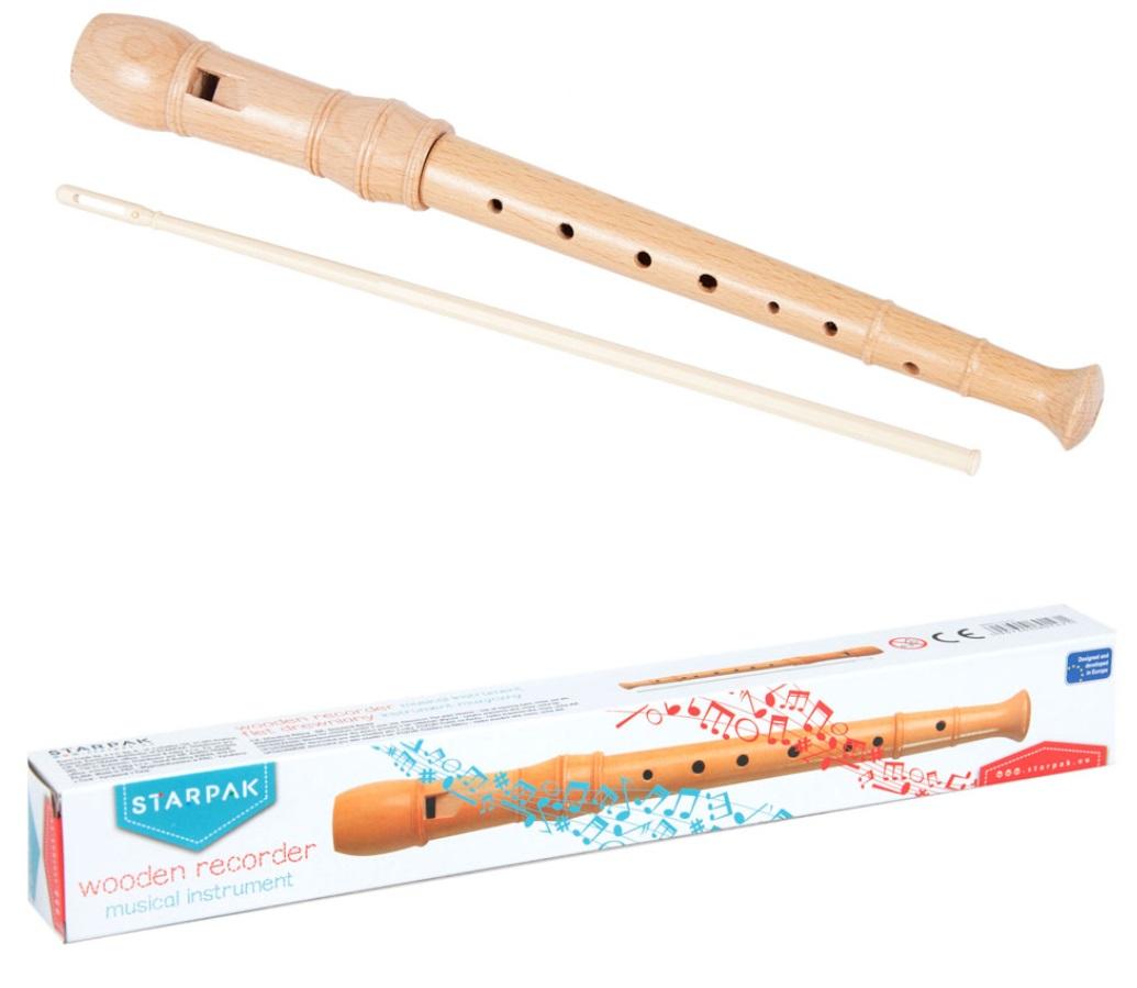 Flet prosty drewniany, w naturalnym kolorze. Przydatny podczas zabawy w domu i nauki w szkole. W komplecie przyrząd do czyszczenia.