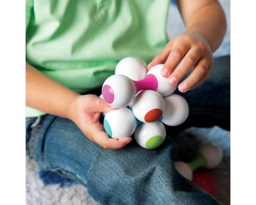 Flexicule, pierwsza łamigłówka malucha od Fat Brain Toy Co. Flexicule to pięknie zaprojektowana zabawka, o nowoczesnym designie, którą docenią dzieci i rodzice w każdym wieku. 5 kolorowych, elastycznych elementów, zrobionych z silikonu i plastiku, odpowiednio ułożonych utworzy wyjątkową kostkę. Idealna zabawka dla szukających zajęcia paluszków. Rozłóż kolorowe elementy wykonane z plastiku i silikonu, a następnie wyginając je, złóż z powrotem w wyjątkowy sześcian. Flexicule to pierwsza łamigłówka dziecka, ale to także wyjątkowa, pięknie zaprojektowana zabawka na biurko, rzeźba, zabawka, którą docenią dzieci i rodzice w każdym wieku. Ciekawskie paluszki nie oprą się unikalnym konturom i nieograniczonym możliwościom wyginania! Łamigłówka Flexicule: to wysokiej jakości silikonowe i plastikowe elementy, które tworzą wyjątkową kostkę; wspiera umiejętności motoryczne, wizualno-przestrzenne, rozwiązywanie problemów, kreatywność; wspaniała zabawa w pięknym designie; miękki i bezpieczny dla dziecka materiał; zabawa dla ciekawskich rąk w każdym wieku; gadżet na biurko; zawiera 5 elementów – rdzeń w kształcie litery H, 4 elementy z kolorowego silikonu i plastiku; elastyczne części wykonane są w 100% z wysokiej jakości silikonu; tworzywa sztuczne nie zawierają BPA;