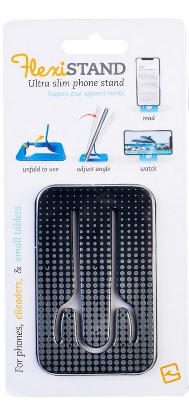 Flexistand to opatentowany ultra-cienki, bardzo elastyczny, przenośny uchwyt na telefony komórkowe (smartphony), e-czytniki oraz małe tablety. Telefon można umieścić pionowo lub poziomo pod dowolnym kątem. Idealnie sprawdza się do czatów wideo, oglądania filmów, czytania i pisania, robienia selfie i nie tylko.