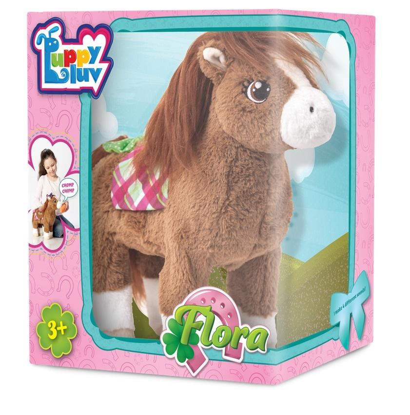 Zabawka wykonana jest z miękkiego, miłego w dotyku pluszu • Flora wydaje dźwięki jak prawdziwy koń • Flora wydaje 4 różne dźwięki, porusza ogonem i nogą • aż 12 różnych akcesoriów w zestawie