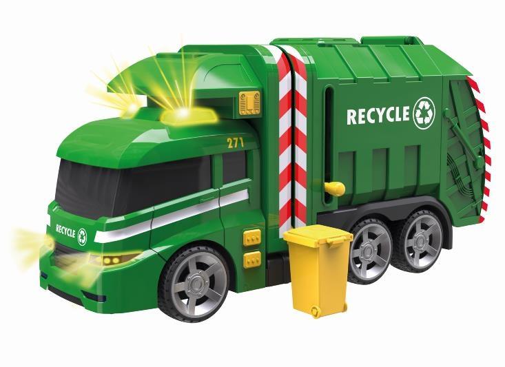 Pojazd na baterie - wymagane 3 x 1,5V AAA/LR03, dołączone. Świeci kolorowo Wydaje dźwięki Podnoszona i otwierana naczepa. Wiek 3+