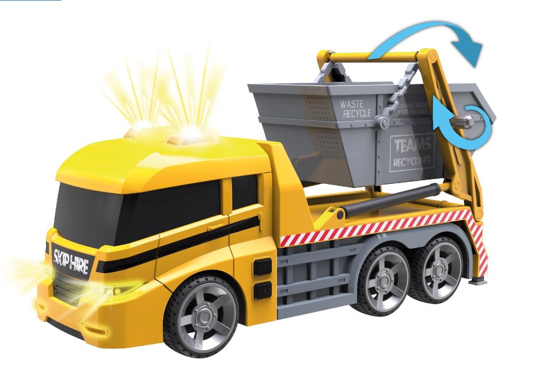 Śmieciarka z Dumel 37-centymetrowa zabawka, która stanowi gratkę dla miłośników dużych pojazdów! Maluch może swobodnie popychać ją do przodu i jeździć w każdym kierunku, a dodatkowo posiada funkcje jak prawdziwa śmieciarka! Dołączony do zestawu kontener na odpady można umieścić na podnośniku i opróżnić go, a całkowitą zawartość ciężarówki wysypać przechylając pojemnik. Zbieraj rozsypane klocki, transportuj porozrzucane, drobne zabawki, tak, by zadbać również o porządek w swoim pokoju. Dla dzieci w wieku od 3 lat