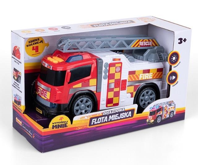 Wóz straży pożarnej wyposażony w 4 aktywne przyciski uruchamiające poszczególne funkcje: jazdę do przodu, do tyłu, zapalanie świateł oraz realistyczne dźwięki. Kiedy silnik pojazdu nie jest uruchomiony, koła swobodnie się poruszają, co umożliwia prowadzenie go ręką. Pojazd posiada ruchomą drabinę.