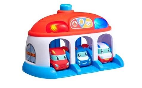 • w zestawie stacja ratownicza z aktywnymi przyciskiem (światło, dźwięk) + 3 mini pojazdy;