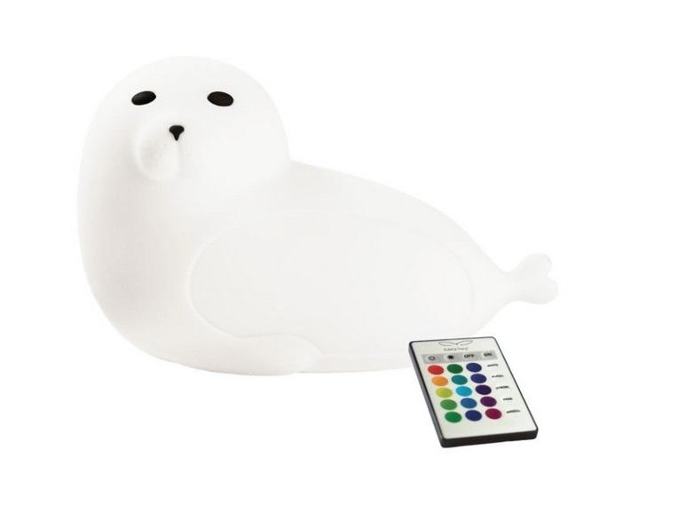Lampka FOKA Rabbit & Friends ma charakterystyczny i zabawny kształt foki z okrągłą główką, dużymi oczami, uroczą buźką, przednimi płetwami i fikuśną, płetwą ogonową. Lampka sprawdza się świetnie jako towarzysz wieczornych zabawach wywołując uśmiech na twarzy dziecka. Umożliwia czytanie bajek przed snem jednocześnie zapewniając kojące towarzystwo i spokojny, bezpieczny sen. W godzinach nocnych ułatwia doglądanie najmłodszych pociech, zmianę pieluch i karmienie piersią. Nieco starszych dzieciom posłuży jako przenośne oświetlenie w drodze przez ciemny korytarz do łazienki lub sypialni rodziców. Foczka spełnia się jako doskonały przyjaciel w podróży, dzięki ładowaniu za pomocą kabla USB typ C. Lampka jest miękka i przyjemna w dotyku. Po ściśnięciu, lampka zmienia kształt, by po kilku chwilach wrócić do pierwotnego kształtu. Paleta kolorów lampki stworzy w pomieszczeniu niepowtarzalny, harmonijny, wypełniony miękkim światłem ciepły klimat. Lampka działa na poklepywanie. Dodatkową funkcją jest możliwość ustawienia automatycznego wyłączenia lampki po 2 h. Obsługa lampki jest intuicyjna - nawet małe dziecko poradzi sobie bez problemu. Wielofunkcyjny pilot do obsługi na odległość umożliwia: włączanie i wyłączanie, regulację natężenia światła, wybór koloru światła (4 kolory główne oraz 12 pośrednich), tryby zmiany kolorów świecenia: migotanie, pulsowanie, łagodne przejścia. Lampka Rabbit & Friends nie ma ostrych krawędzi ani się nie nagrzewa (dzięki technologii LED). Wykonana jest z wysokiej jakości, certyfikowanego, bezpiecznego, wolnego od BPA, silikonu. Cechy:
