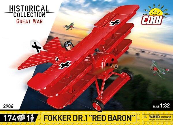 Czerwony Baron to zdecydowanie najbardziej rozpoznawalny samolot z okresu I wojny światowej. Fokker Dr.1 to niemiecki, niesamowicie zwrotny (jak na tamte czasy), ale dość powolny trójpłatowiec. Był pilotowany przez słynnego Manfreda von Richthofena, prawdziwego asa lotnictwa czasów Wielkiej Wojny, który wzbudzał powszechny strach, ale i uznanie. Model z klocków konstrukcyjnych COBI starannie odtwarza w nowej skali 1:32, historyczny samolot z okresu Wielkiej Wojny. Ma ruchome śmigło, koła, oraz lotki skrzydeł. Wysokiej jakości nadruki doskonale odtwarzają historyczne oznaczenia samolotu. Solidna konstrukcja sprawia, że jest to model idealny zarówno do zabawawy, jak i ekspozycji. Model zawiera rewelacyjną figurkę pilota: słynnego Manfreda von Richthofena zwanego "Czerwonym Baronem". Figurkę pilota w charakterystycznym mundurze oficerskim można posadzić w kokpicie za sterami samolotu uzbrojonego w dwa karabiny maszynowe. Całość zestawu uzupełnia klocek z nadrukowaną nazwą samolotu. 174 wysokiej jakości elementów, wyprodukowane w UE przez firmę z ponad 20-letnią tradycją, spełniają normy bezpieczeństwa dotyczące produktów dla dzieci, w pełni kompatybilne z innymi markami klocków konstrukcyjnych, klocki z nadrukami nie odkształcają się i nie bledną w czasie zabawy czy pod wpływem temperatury, czytelna i intuicyjna instrukcja oparta na rysunkach i ikonach, 1 figurka pilota, klockowy model samolotu, skala 1:32, wymiary modelu (dł x sz x wys): 17,5 cm (6.9") x 22,5 cm (8.9") x 11 cm (4.3")