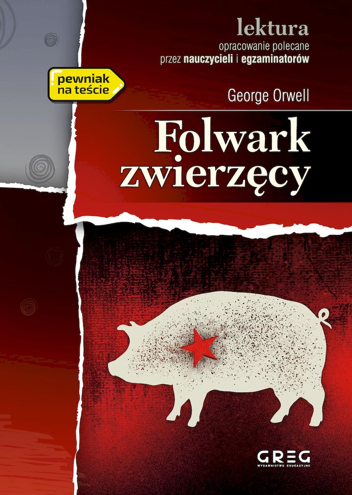 Wydanie Folwarku zwierzęcego kompletne bez skrótów i cięć w treści. W tym wydaniu znajdziesz odpowiedzi na pytania z podręcznika - „pewniak na teście”, czyli wskazanie zagadnień, które zwykle pojawiają się w pytaniach z danej lektury we wszelkich testach sprawdzających wiedzę, a także w podręcznikach i na klasówkach. Książka zawiera pełen tekst lektury. Na końcu książki zamieszczono opracowanie, w którym znajduje się bardzo szczegółowe streszczenie oraz drugie skrócone, ułatwiające szybkie przygotowanie się przed lekcją. Opracowanie zawiera ponadto plan wydarzeń, wnikliwie wyjaśnioną problematykę oraz szerokie charakterystyki bohaterów. Zwierzęta na Folwarku Dworskim marzą o pięknych czasach, kiedy władza człowieka nad zwierzętami dobiegnie końca i wszystkie będą wolne, równe i szczęśliwe. Gdy nadarza się okazja, by tę ideę urzeczywistnić, nie wahają się ani chwili. Wypędzają ludzi, zmieniają nazwę na Folwark Zwierzęcy i rozpoczynają samodzielne rządy. Nikt nie ma wątpliwości, że najmądrzejsze spośród nich są świnie i to one powinny trzymać ster. Szybko jednak dochodzi do konfliktu między Napoleonem i jego dawnym przyjacielem, Snowballem, a kiedy Snowball zostaje wygnany, wydarzenia - ku przerażeniu pozostałych zwierząt - zaczynają coraz szybciej toczyć się w zupełnie innym kierunku, niż oczekiwano... Folwark zwierzęcy George’a Orwella to znana na całym świecie przypowieść o Rosji sowieckiej, ale też ponadczasowe ostrzeżenie przed każdym systemem totalitarnym, książka odsłaniająca najgłębsze mechanizmy rodzenia się totalitarnej dyktatury. Teraz przedstawiamy wydanie z opracowaniem, dzięki któremu czytelnikowi nie umknie żaden niuans znaczeniowy!