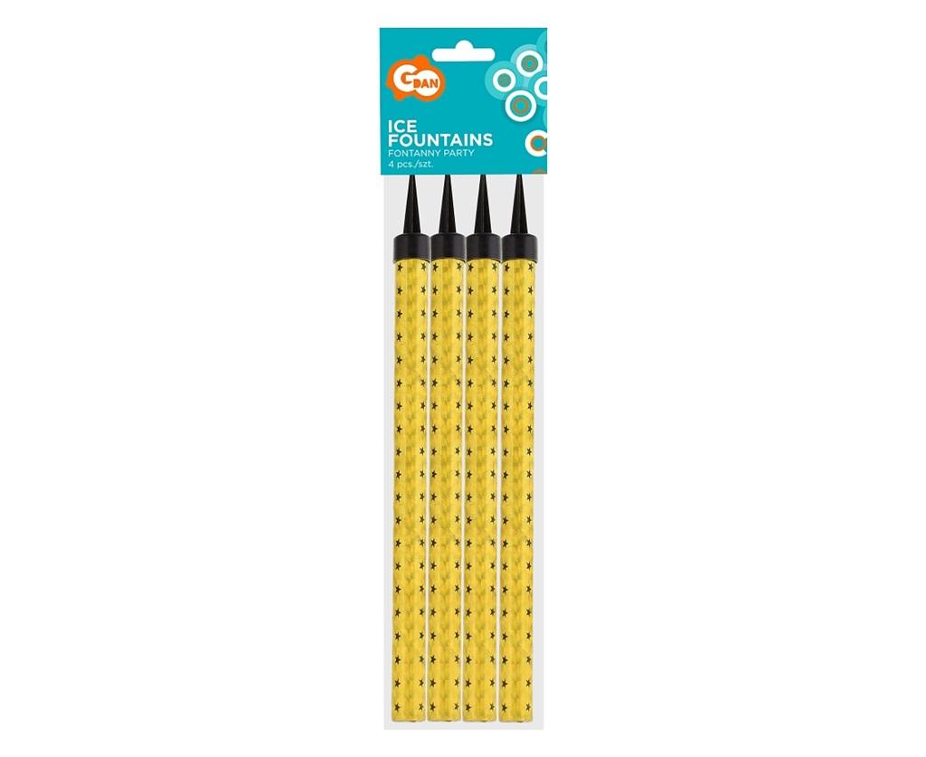 Fontanny tortowe party - 25 cm / 4 szt. Fontanna urodzinowa to oryginalna dekoracja, która może zastąpić świeczki urodzinowe. Fantazyjne fontanny służą jako ozdoby na urodziny czy wesele. Fontanna ma wysokość 25 cm i 15 mm średnicy. Przed odpaleniem fontanna powinna być umieszczona pionowo, po odpaleniu należy się oddalić na co najmniej 1 m. Szczegółowa instrukcja dołączona jest do produktu. Opakowanie: 4 szt Wysokość: 25 cm Średnica: 15 mm