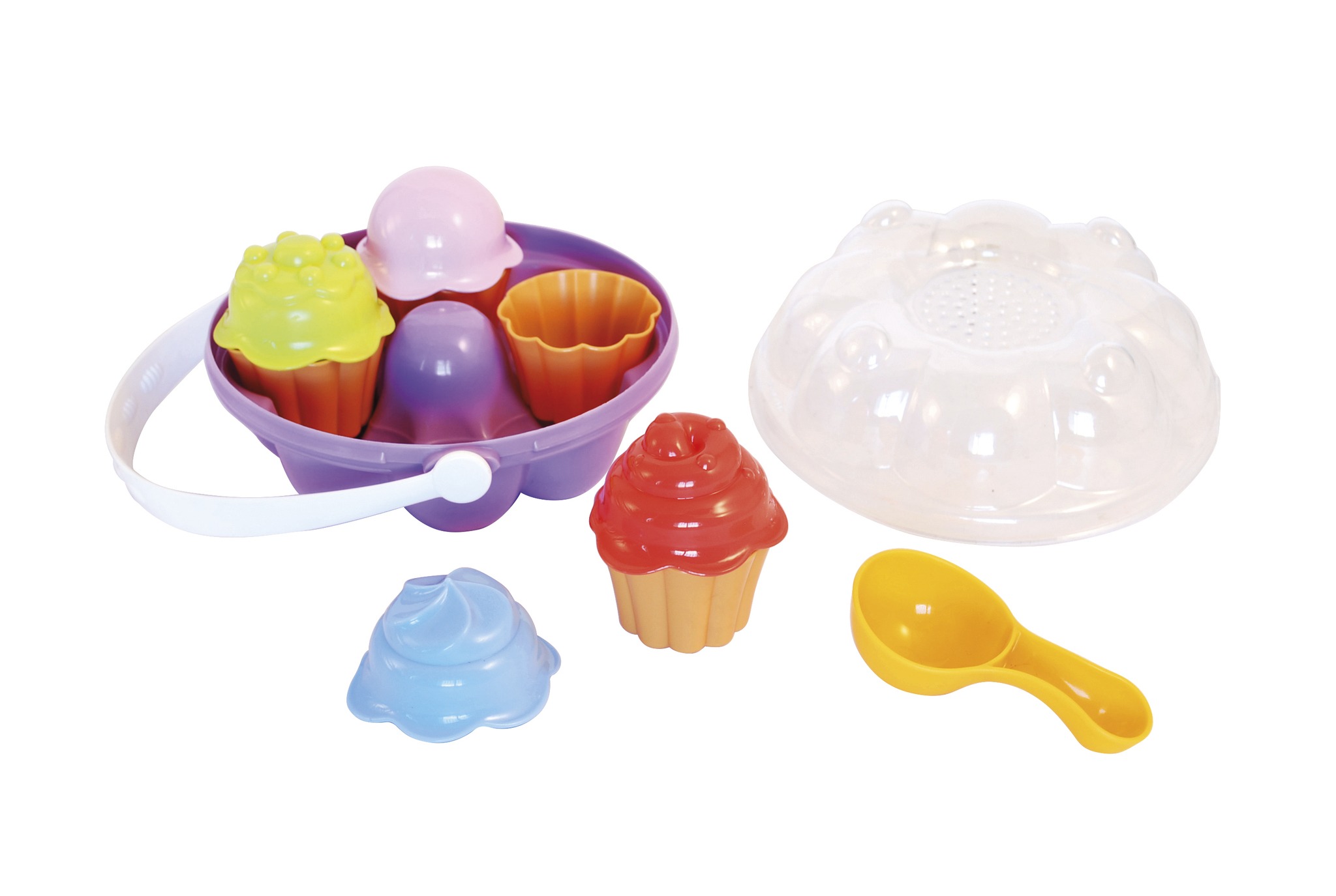 Ten niewielki zestaw do piasku kryje w sobie liczne zalety! Składa się z czterech foremek-babeczek z wieczkami, łyżeczki oraz zamykanego koszyczka z rączką który bez trudu mieści wszystkie elementy, a dodatkowo jest bardzo wygodny do przenoszenia. Koszyczek może również pełnić rolę kolejnej foremki do robienia dużych babek z piasku. Foremki babeczki w koszyku Adriatic mogą służyć do zabawy w ogrodzie, w piaskownicy, w basenie czy też na plaży. Dziecko może bawić się w małego cukiernika, tworząc piaskowe babeczki o rozmaitych kształtach.