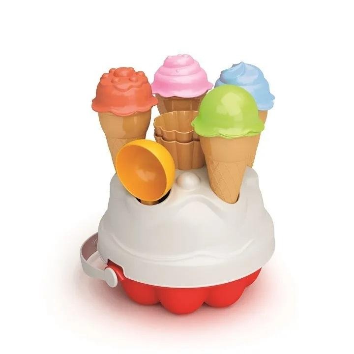 Skuteczny sposób na zainteresowanie i zajęcie małego dziecka to podarowanie mu zabawek do piasku z licznymi elementami! W tej ofercie przedstawiamy bogato wyposażony zestaw z foremkami do lodów gałkowych. W skład zestawu wchodzą zabawkowe wafelki do lodów, kolorowe babeczki, gałkownica oraz koszyk w którym można wygodnie przechowywać wszystkie elementy, jak również wykorzystać go do zabawy w piasku. Zestaw nadaje się dla dzieci już po ukończeniu dwóch lat życia. Zabawka urzeka ciepłą, barwną kolorystyką która sprawia, że maluch chętnie po nie sięga.