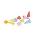 W tej ofercie prezentujemy mały zestaw foremek, które sprawią ogromną frajdę każdemu dziecku! W komplecie znajdują się cztery foremki w kształcie rożków wraz z wieczkami oraz łyżka do nakładania lodów. Wszystkie elementy wyróżniają się żywymi i nasyconymi kolorami, doskonale wpisującymi się w dziecięce gusta. Ten atrakcyjny zestaw foremek sprawdzi się w każdej sytuacji nadaje się do zabawy w piaskownicy oraz na plaży, ale równie dobrze można go wykorzystać np. podczas zabaw w basenie lub w wannie. Każde dziecko może znaleźć swój własny, ulubiony sposób na zabawę z foremkami w kształcie lodowych rożków!