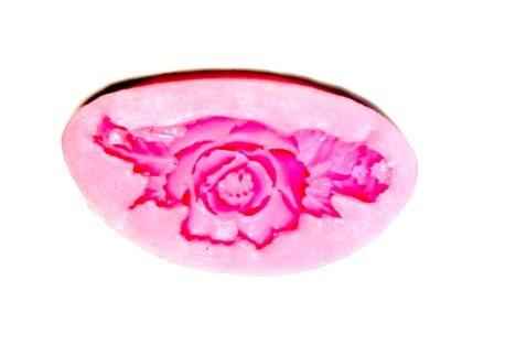 Forma silikonowa wielkości 7,5 cm x4 cm do odlewów z gipsu, mas plastycznych, plasteliny, modeliny, mas cukierniczych itp.Z formy jest możliwość odlania lub stworzenia 1 elementu w kształcie kwiatu róży z liśćmi.
