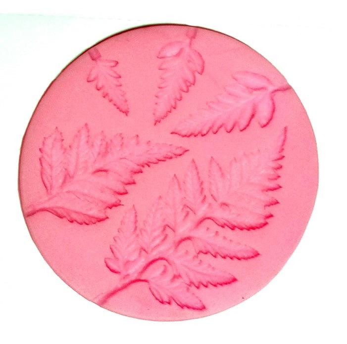 Forma silikonowa wielkości 9 cm x 9 cm do odlewów z gipsu, mas plastycznych, plasteliny, modeliny, mas cukierniczych itp.Z formy jest możliwość odlania lub stworzenia 5 elementów w kształcie gałęzi paproci.