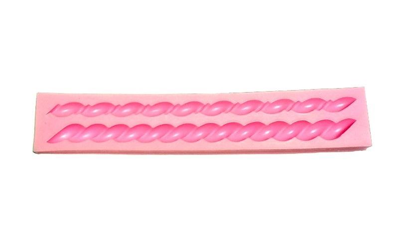 Forma silikonowa wielkości 4,5 cm x22 cm do odlewów z gipsu, mas plastycznych, plasteliny, modeliny, mas cukierniczych itp.Z formy jest możliwość odlania lub stworzenia 2 elementów w kształcie bordiury perłowej lub naszyjnika.