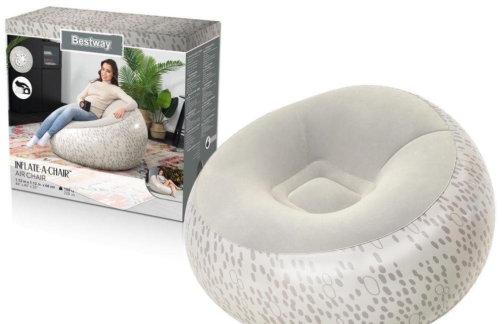 Dmuchany Fotel Szary Bestway 75052 Dmuchany fotel Bestway to idealne rozwiązanie dla osób ceniących wygodę i funkcjonalność. Dzięki nowoczesnemu designowi i wytrzymałej konstrukcji typu coil beam, świetnie sprawdzi się zarówno w domu, jak i na świeżym powietrzu. Najważniejsze cechy: Uniwersalne zastosowanie - do użytku wewnętrznego i zewnętrznego Wyjątkowa wygoda - flokowana powierzchnia i design typu bean bag Regulowana twardość - możliwość dostosowania poziomu napompowania Stylowy wygląd - dostępny w trzech kolorach: beżowym, niebieskim i czerwonym Łatwa obsługa - dwudrożny zawór dla szybkiego napełniania i opróżniania powietrza Solidność i trwałość - maksymalne obciążenie do 100 kg Specyfikacja: Wymiary: 112 x 112 x 66 cm Maksymalne obciążenie: 100 kg Kolory: beżowy, niebieski, czerwony Zawartość zestawu: Dmuchana pufa Łatka naprawcza Dzięki eleganckiemu nadrukowi i ergonomicznemu kształtowi, fotel Bestway to doskonałe połączenie komfortu i nowoczesnego stylu. Idealny wybór na relaks w domu, ogrodzie czy na tarasie.