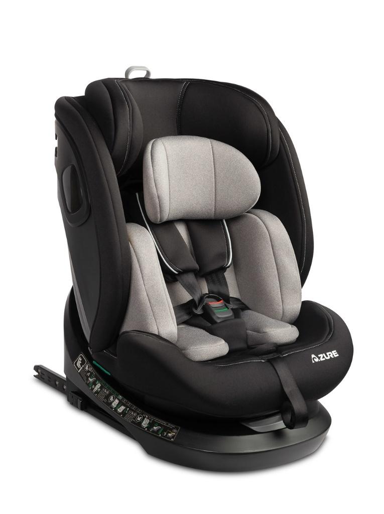 Fotelik samochodowy Azure to fotelik iSIZE, który rośnie razem z dzieckiem. Jest przeznaczony dla maluszków już od 40 cm i można go użytkować do momentu, aż dziecko osiągnie 150 cm wzrostu. Wyposażony jest w szerokie i wygodne siedzisko z 15-stopniową regulacją zagłówka. W foteliku znajduje się wyjmowana wkładka redukcyjna z dodatkowym opinanym zagłówkiem. Gwarantuje ona bezpieczne i komfortowe ułożenie maluszka. Fotelik obraca się o 360 stopni, co ułatwia wkładanie i wyjmowanie dziecka. Azure można zamontować tyłem do kierunku jazdy za pomocą systemów ISOFIX i Top Tether (dla dzieci o wzroście 40-105 cm) lub przodem również systemów ISOFIX i Top Tether. Wyższe dzieci mogą być przewożone przodem do kierunku jazdy w foteliku, który jest zamontowany tylko za pomocą pasów samochodowych.