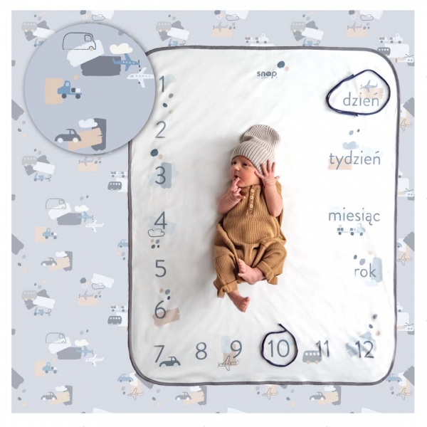 Snap the moment foto-kocyk to dwustronny kocyk, który rośnie razem z dzieckiem. Jedna strona służy do oznaczania wieku malucha, druga to tradycyjny kocyk dziecięcy. Pastelowe wzory zachwycą zarówno dziecko, jak i rodziców. Foto-kocyk® doskonale sprawdzi się jako element wyprawki noworodka, a także kocyk przedszkolaka. W zestawie znajdują się 2 sznurki do oznaczania wieku maluszka oraz limitowana foto-karta.