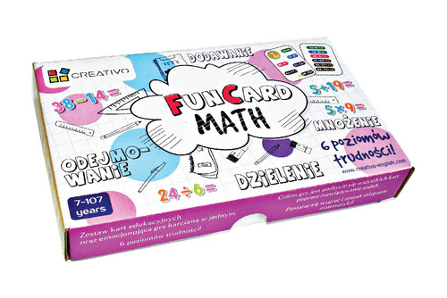 Zestaw kart edukacyjnych do nauki dodawania, odejmowania, mnożenia i dzielenia. Karty mogą być wykorzystane do nauki indywidualnej lub jako ekscytująca, dynamiczna gra karciana. Zestaw składa się ze 100 kart (2 talie po 50 kart) zawierających w sumie 600 działań.
