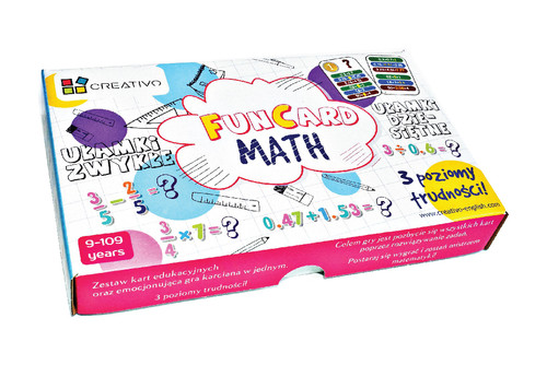 Zestaw kart edukacyjnych z działaniami na ułamkach zwykłych oraz dziesietnych. Karty mogą być wykorzystane do nauki indywidualnej lub jako ekscytująca, dynamiczna gra karciana. Zestaw składa się ze 100 kart (2 talie po 50 kart) zawierających w sumie 600 działań.