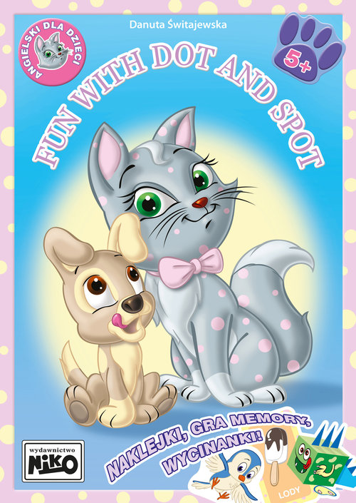 Dziecko 5-, 6-letnie jest bardzo ciekawe świata. W tym wieku rozwija się wyobraźnia i fantazja, wzrasta możliwość dłuższego skupienia uwagi. Aktywność opiera się głównie na praktycznym działaniu, co sprzyja nauce wielu nowych rzeczy. To także wspaniały okres do rozpoczęcia nauki języka obcego. Ćwiczenia zawarte w Fun with Dot and Spot mogą być uzupełnieniem i utrwaleniem wiadomości, zdobywanych przez dziecko w przedszkolu i w szkole oraz do pracy z rodzicem w domu. Znajdują się tu pomysły na wspólne zabawy językowej w oparciu o bliski dziecku materiał obrazkowy.